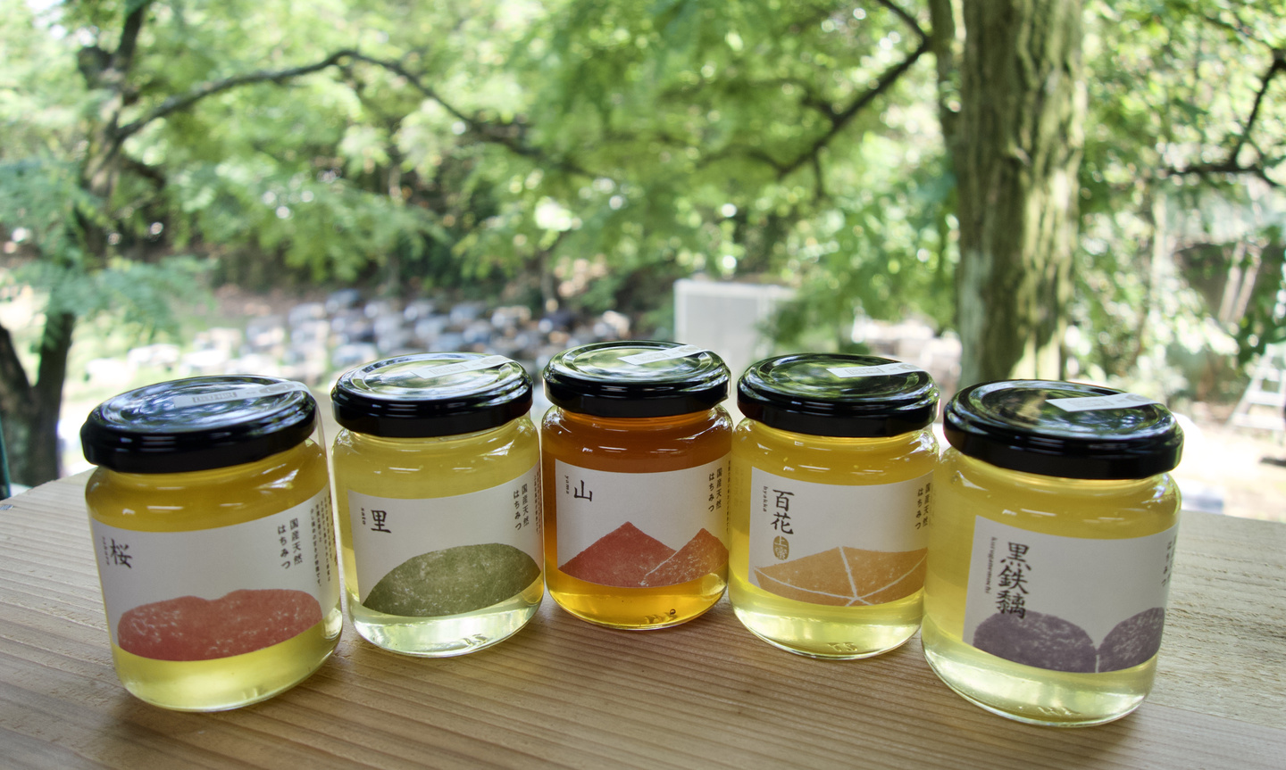 (株)養蜂研究所で採れるはちみつ5種類をパック。
